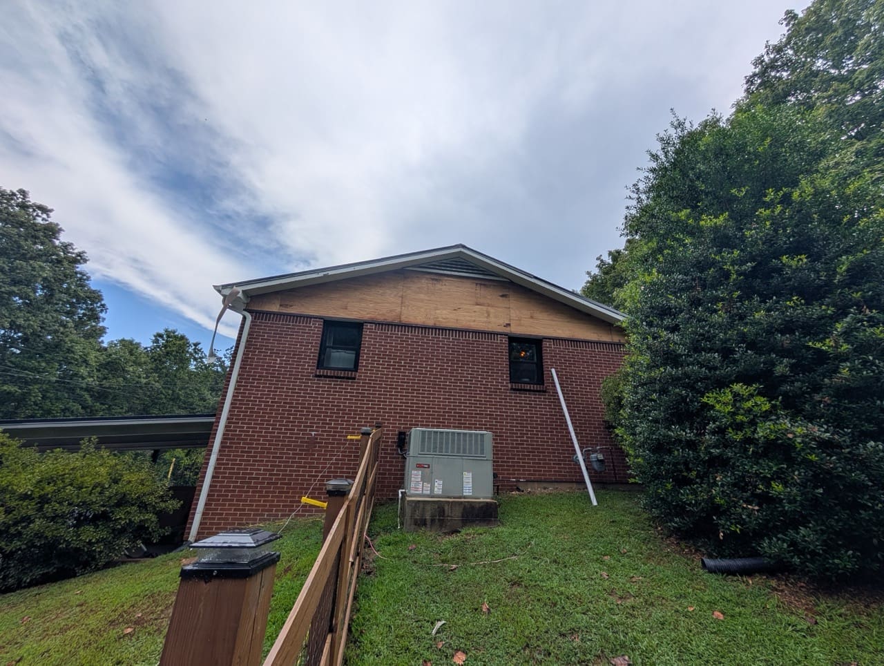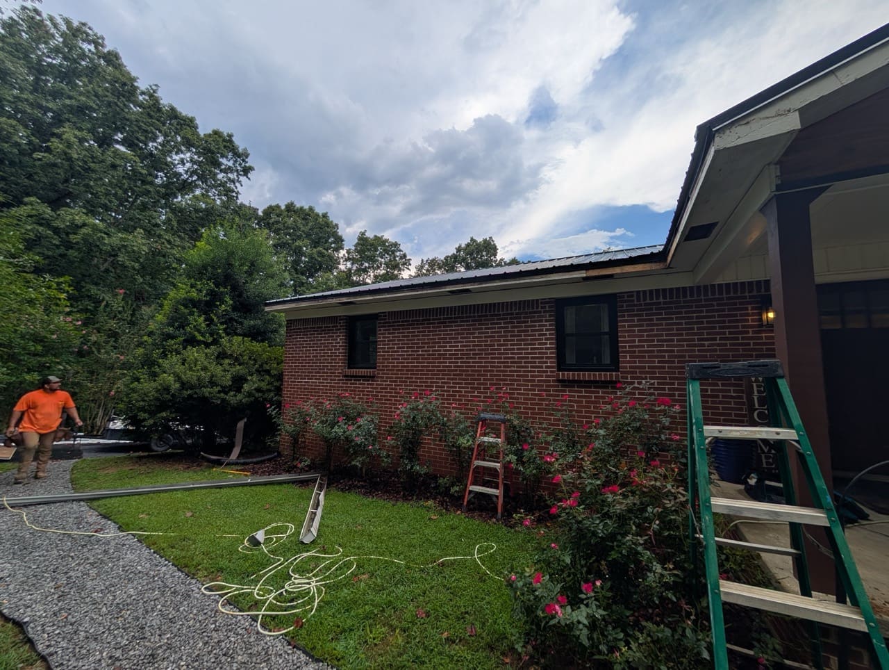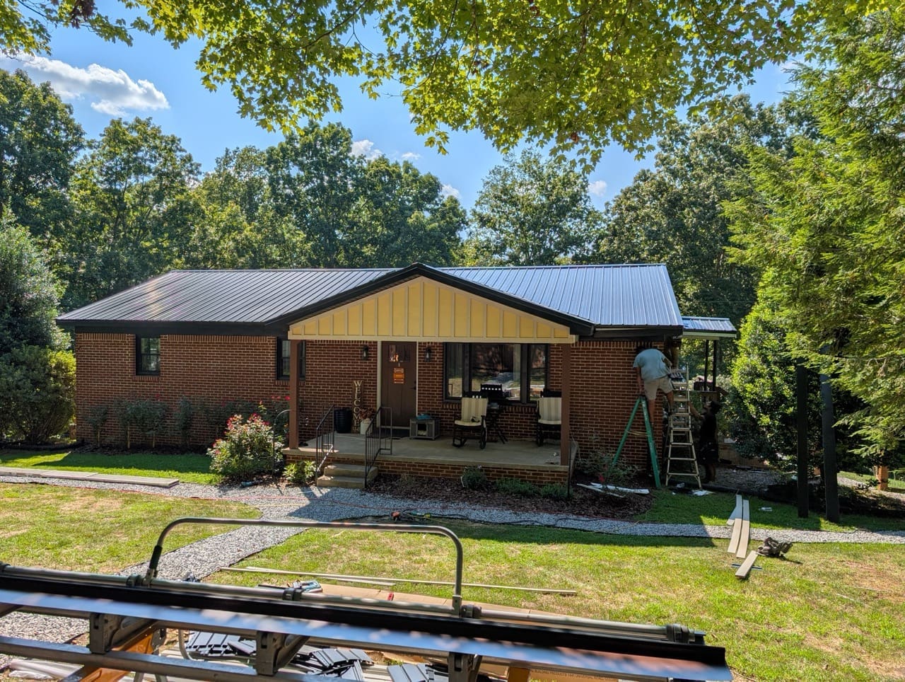 Before the work started, the home had a mix of finishes that didn’t quite work together. The gables were plain and lacked detail. The porch ceilings were standard vinyl. The gutters and soffits were white and didn’t connect visually with the rest of the house.