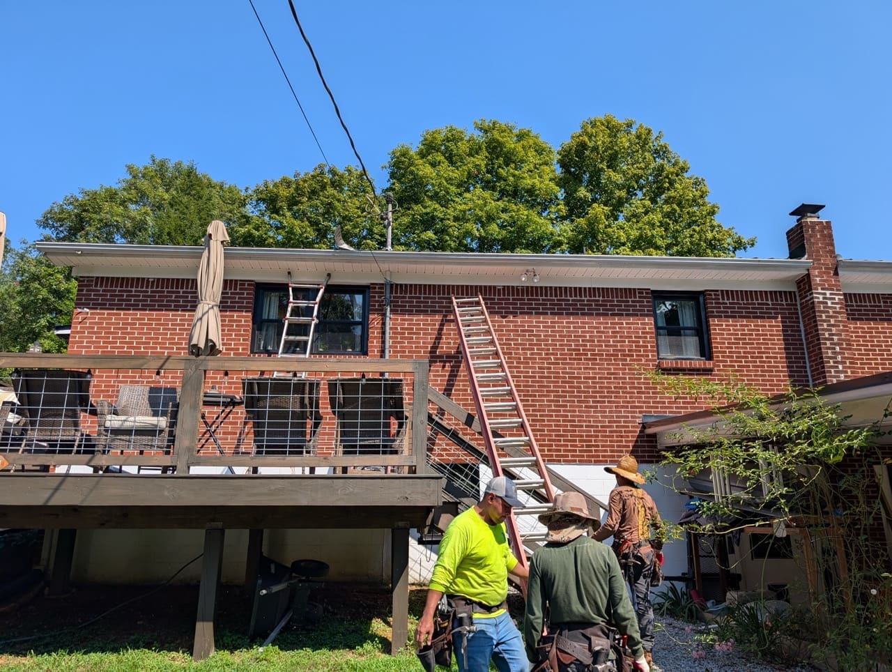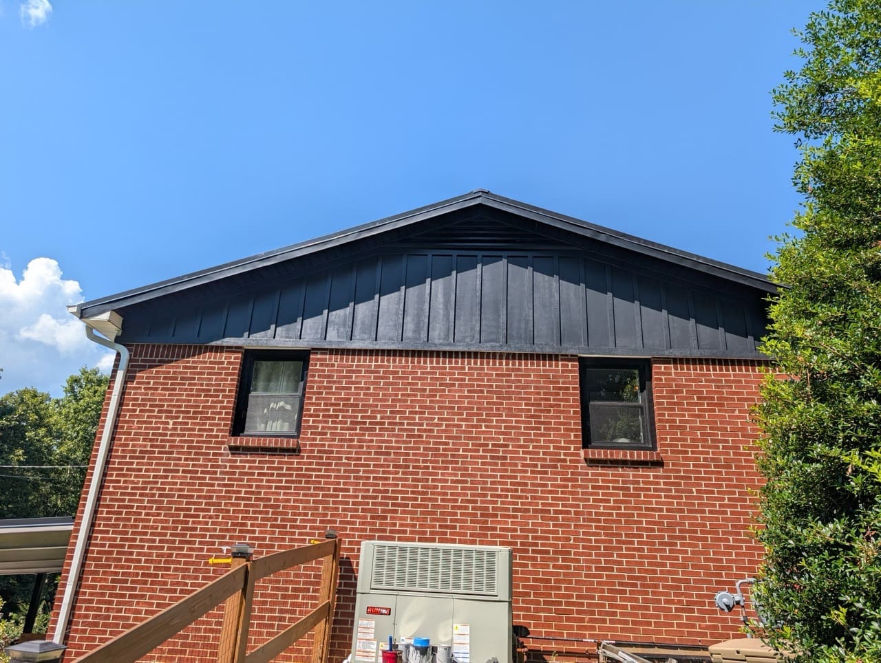 We removed the old 4 inch white gutters and installed 6 inch black gutters. At the same time, we upgraded the soffit to match the new look.