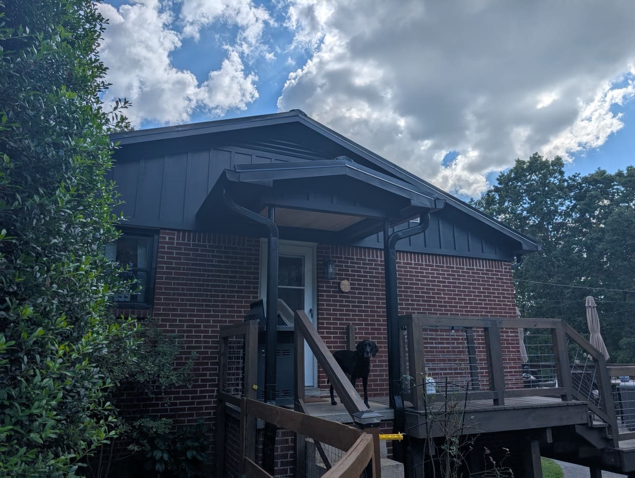 The biggest visual change came from replacing the old vinyl siding in the gables with board and batten. That alone gave the house more depth and a stronger architectural feel. It also tied everything together with the new black accents, including the updated gutters and trim.